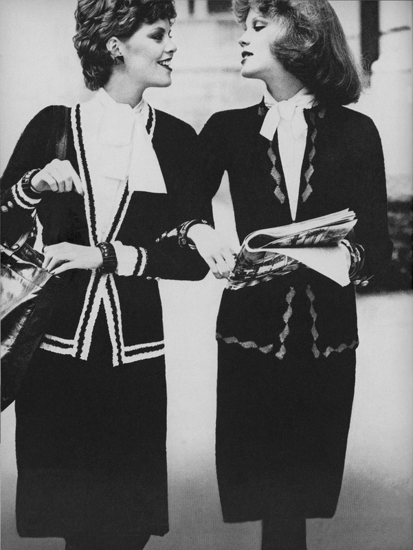 Occasionally people who are indiscreet or misinformed say, ‘Oh, you copy Chanel.’ And, really, I don’t. There is a feeling in what I create that resembles her designs, but if you actually look closely at her’s [sic] and mine they are not at all the same …. My designs are more contemporary. I like to make them in knits or to combine knits and fabrics.