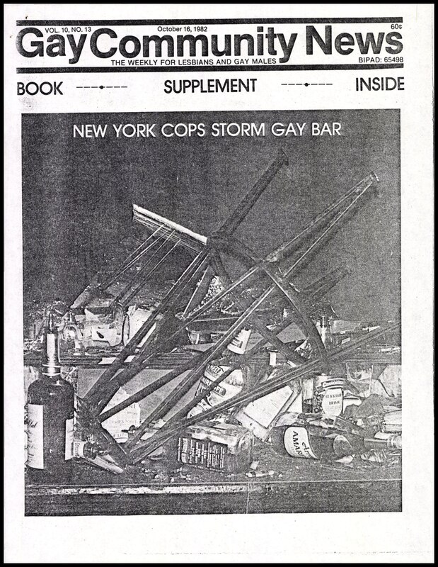 Bob Nelson and Peg Byron, “Demo Supports Victims of Raid on N.Y. Bar,” Gay Community News, October 30, 1982. [source of second pull quote]