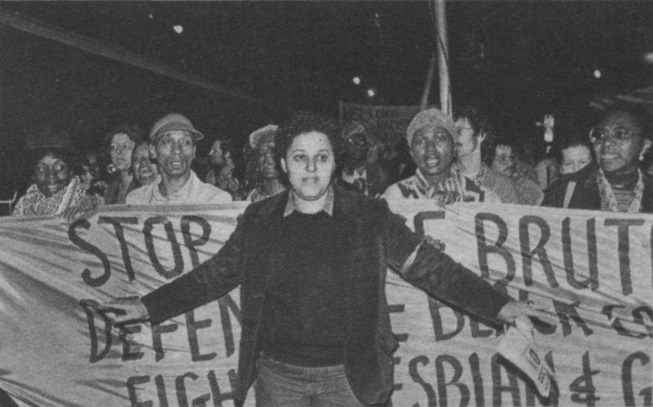 Harriet Hirshorn, “Third World, Lesbian, and Gay Forces Unite at Blue’s Demonstration,” WomaNews, November 1982.