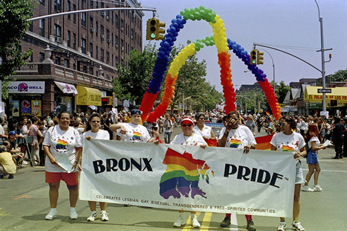 Although there were gay groups organizing in the Bronx in the 1970s and 1980s, the 1990s ushered in an era of increased LGBT visibility in the borough, with the emergence of groups like Gay Men of the Bronx and Bronx Lesbians United in Sisterhood and large-scale events—namely, the 1992 “We Are Everywhere Conference” at Lehman College and the closing ceremony of the 1994 Gay Games at Yankee Stadium. Building on this momentum, in 1997, Gloria Diaz founded Bronx Pride, recognizing that “although lesbians and gays comprise a significant percentage of the Bronx population, there wasn’t a local outlet for us to express ourselves or demonstrate our Pride.” That year, planning for the first annual Bronx Pride Parade and Multicultural Festival began with monthly meetings held every second Wednesday at the Pride in the Bronx Program space at 2390 Grand Concourse.