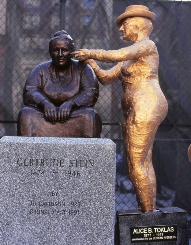 In 1993, as one of its L-U-V actions for Valentine’s Day, direct-action group the Lesbian Avengers hosted readings and a waltz when they installed a temporary statue of Stein’s long-term partner next to the Stein Monument.