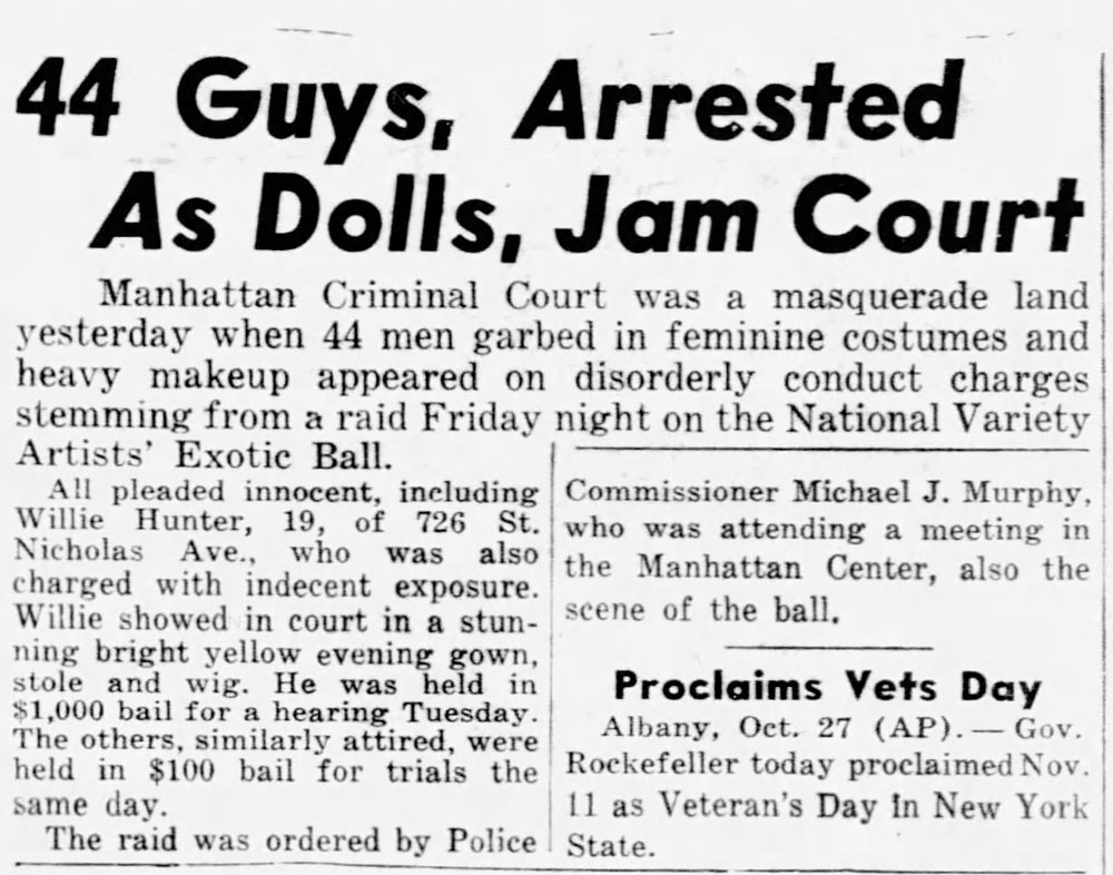“44 Men Posing As Women Arrested at Dance Here,” The New York Times, October 27, 1962, 38.
