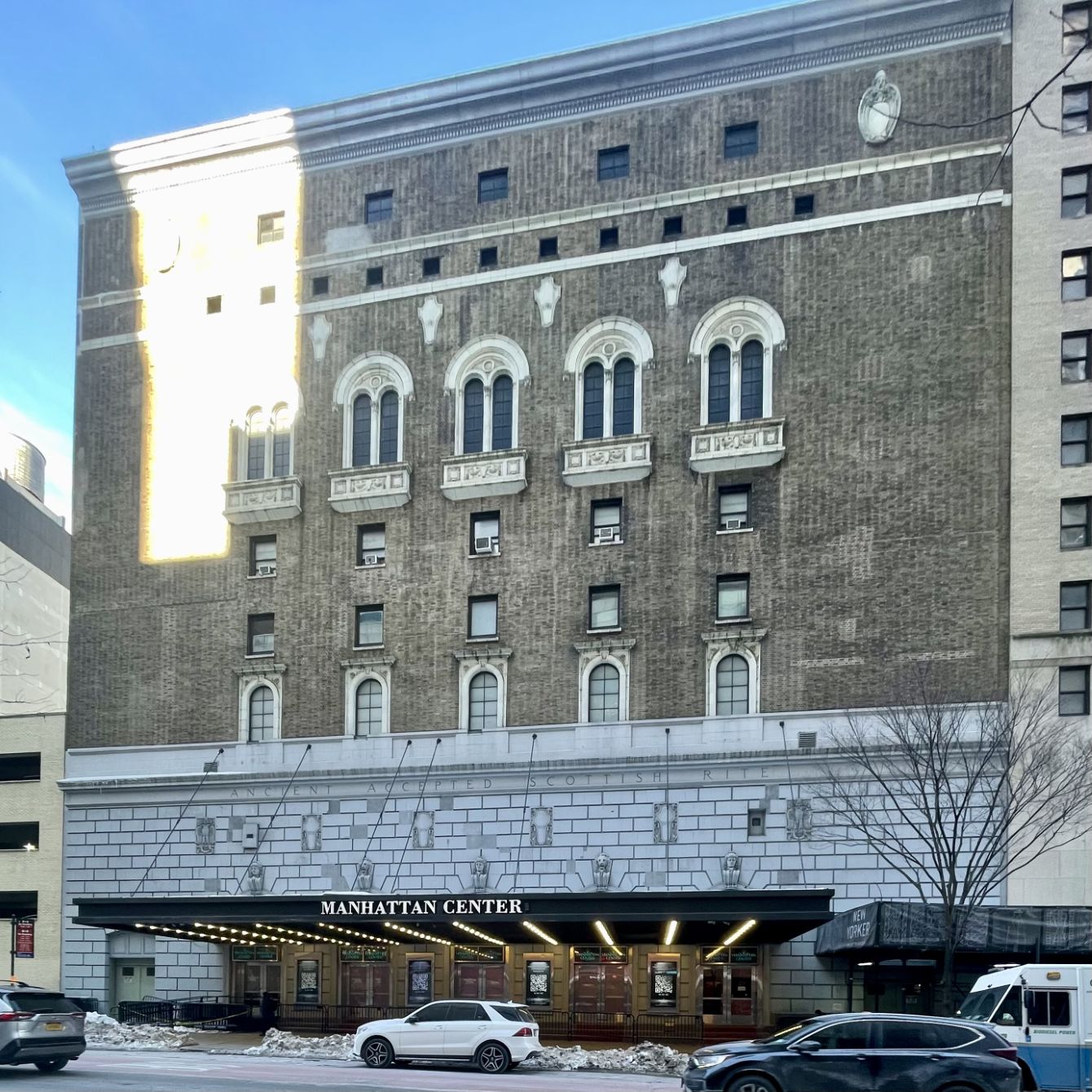 This building was originally the Manhattan Opera House, built by Oscar Hammerstein I and opened in 1906. It was purchased and remodeled in 1922 by the Scottish Rite Masons as its temple. In 1927 Warner Brothers leased it for a sound stage, and in 1938 it became the Manhattan Center, a multi-purpose venue with several event spaces.
