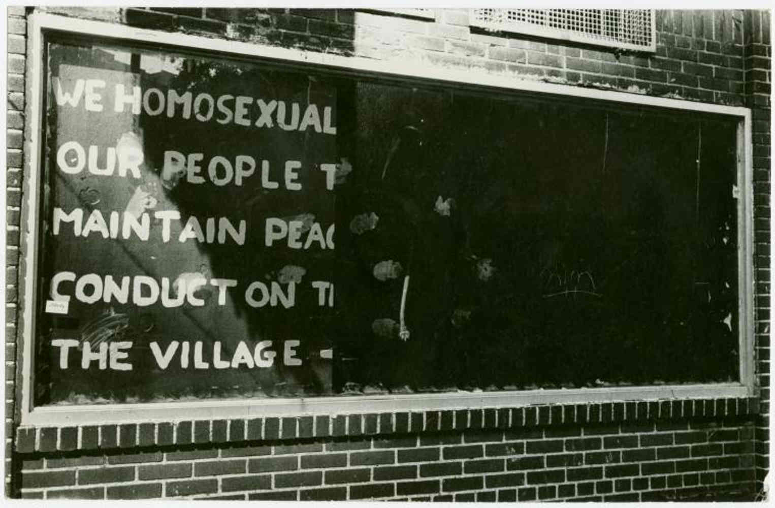 There is no film or video footage of the Stonewall uprising. There is one photo from the first night taken by Daily News photographer Joseph Ambrosini and four photos of Stonewall uprising participants from the second night taken by noted Village Voice photographer Fred W. McDarrah. There are several photographs of the damaged interior taken by McDarrah, and exterior photos taken right after the uprising by Diana Davies. Larry Morris with the New York Times took a number of photographs of groups of people on the streets on the sixth and final night of the disturbances.