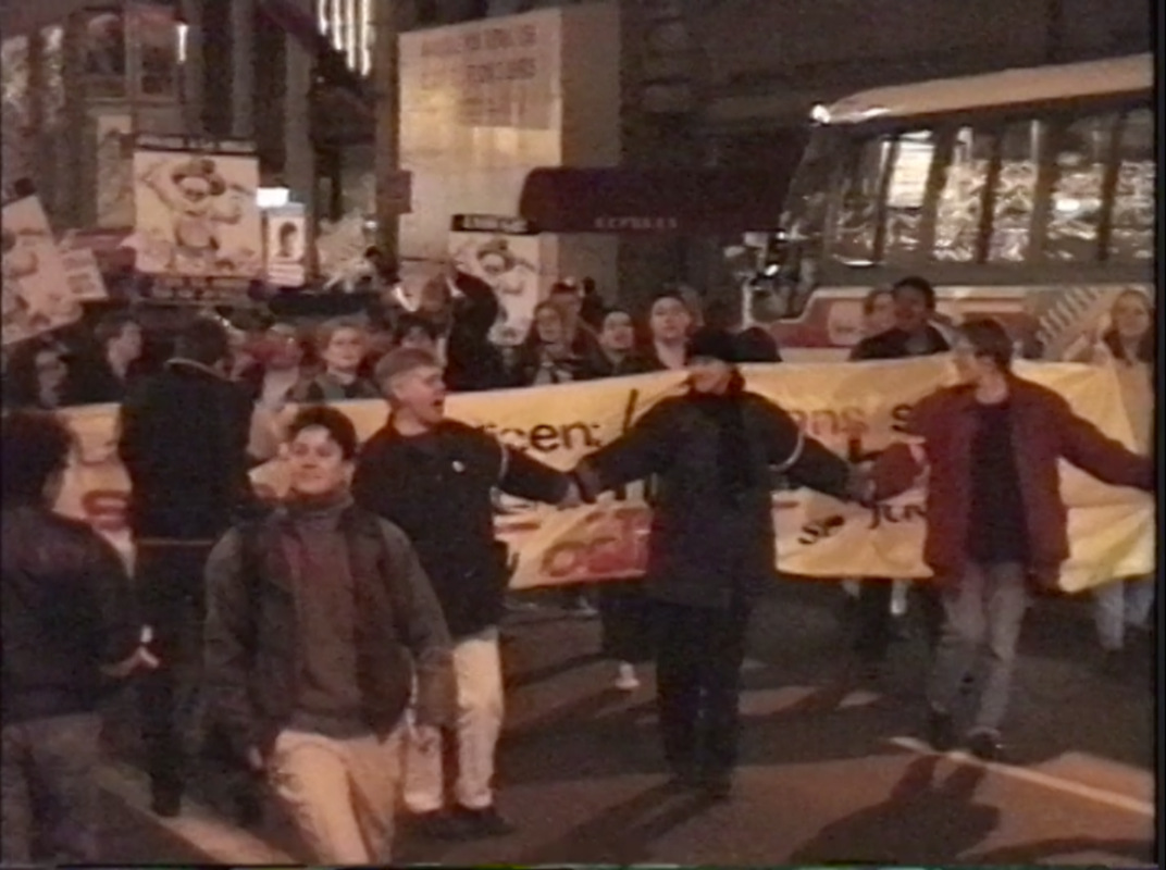 The coalition’s actions included infiltrating the station’s studios during a broadcast, as well as pickets and a protest march in which over 100 multi-racial lesbians rallied outside of the building.