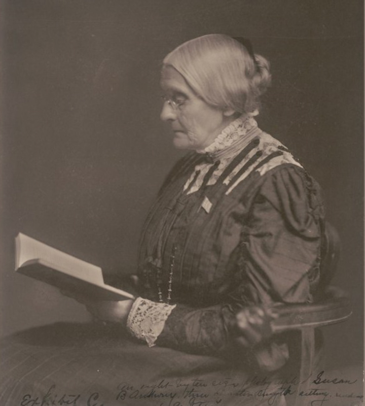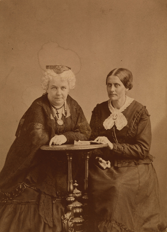 Susan B. Anthony (1820-1906) has been called “the most famous lesbian in America in the 19th century” by the writer Victoria A. Brownworth. Born into a Quaker family, Anthony began as a lecturer for the abolitionist and temperance causes, and turned to women’s rights in 1852. She became one of the single most important leaders of the American women’s rights and suffrage movements. Historian Lillian Faderman called Anthony “the driving force” of American suffrage for decades, as she was constantly traveling all over the country, speaking and bringing women into the movement. The Nineteenth Amendment to the Constitution, granting women the right to vote, was ratified in 1920 and is widely known as the “Susan B. Anthony Amendment.” Faderman has established that the American suffrage movement was largely led by “women who loved other women,” unencumbered by the constraints of heterosexual marriage and children. Anthony had a long, close personal and working relationship with the married Elizabeth Cady Stanton, from 1851 until Stanton’s death in 1902. And though Anthony was derided by opponents in her day as “manly,” and desexualized by many subsequent historians, her romantic attachments with other women are well documented in letters. Anthony was the central figure in the opera The Mother of Us All (1947) by Virgil Thomson and Gertrude Stein, in which she is depicted in a relationship with “Anne.”